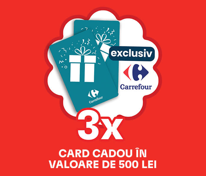 Pentru mai multe detalii vă rugăm să consultați regulamentul sau regulamentul exclusiv Carrefour.